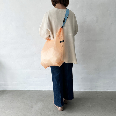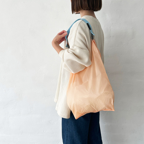 薄手のリップストップナイロンを使用したレジ袋型のエコバッグで、本体の薄さ・軽さはもちろん、