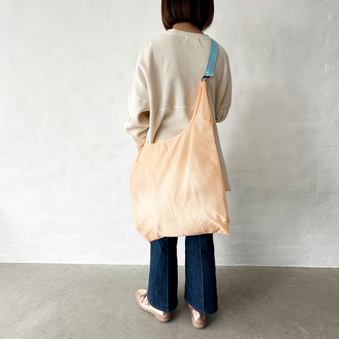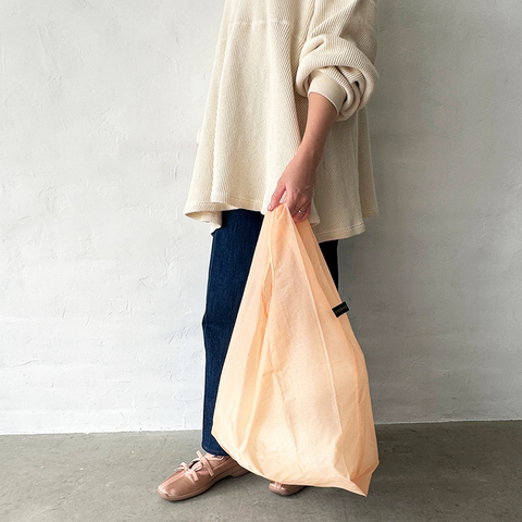 薄手のリップストップナイロンを使用したレジ袋型のエコバッグで、本体の薄さ・軽さはもちろん、