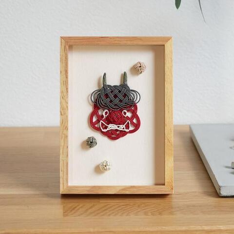 発色の良く深みのある赤(ザクロ)の水引を用い、赤鬼を表現。どこか愛嬌のある表情が、見れば見る程魅力的です。
