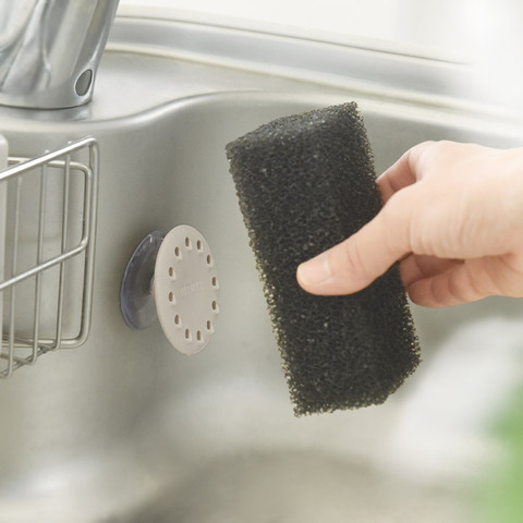 よくあるスポンジホルダーだと、スポンジがシンクに直接触れてしまったり、カゴのようなものだとシンク内がごちゃついて見えたり。キッチンスポンジの収納アイテムは数あれど、一長一短で悩みは尽きないものです。