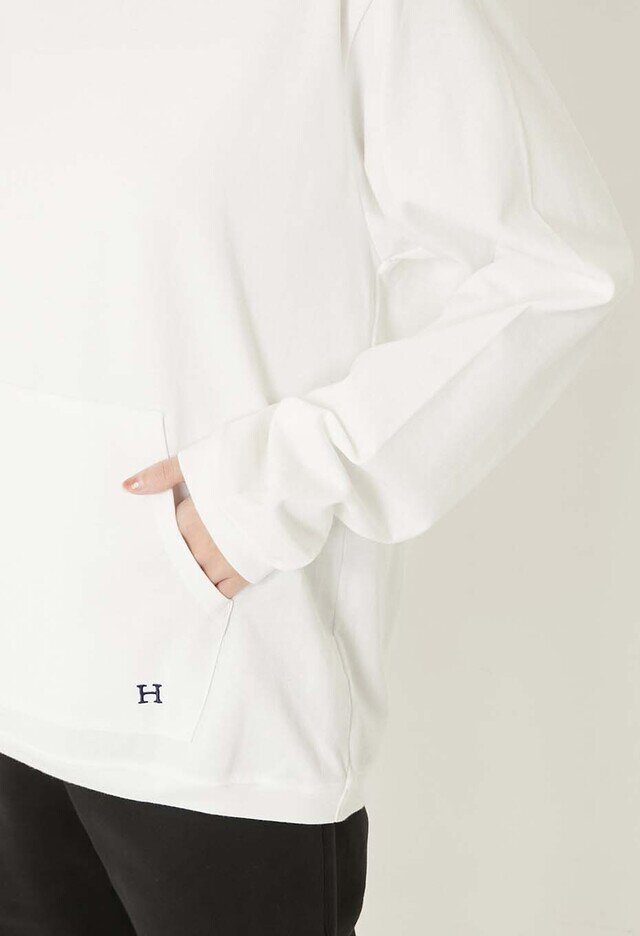 HOLLYWOOD RANCH MARKET|Hエンブロイダリー ベースボールTシャツ ユニセックス 長袖 カットソー H刺繍 日本製