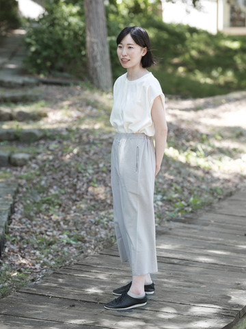 ややタイトに見える形ですが、伸縮性があり動きやすいです。