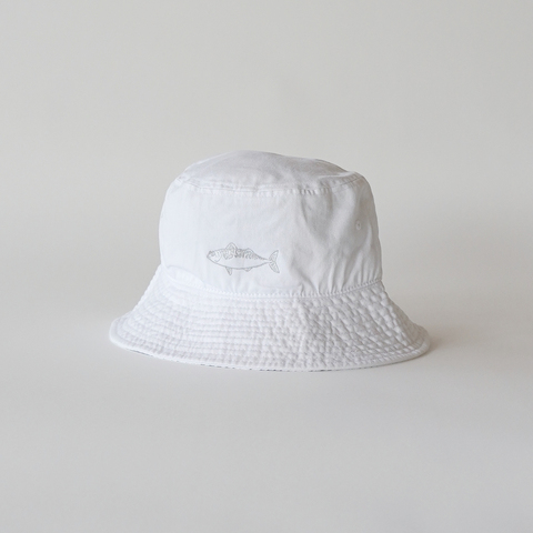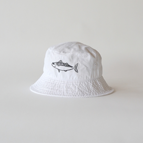 SAVA!STOREを運営する、福井・鯖江で活動するデザインスタジオTSUGI が、地元へのオマージュを込めて仕立てたバケットハットです。フロントの鯖イラストの刺繍は、鯖江の誇りをポップにさりげなく愛するために細部までこだわってデザインしました。背びれのSAVAEもポイント。