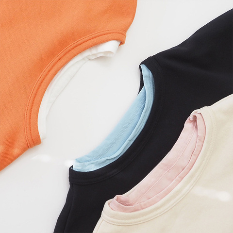 40/2天竺 ワイドTシャツとのレイヤードが綺麗に収まるデザインに仕上げました。