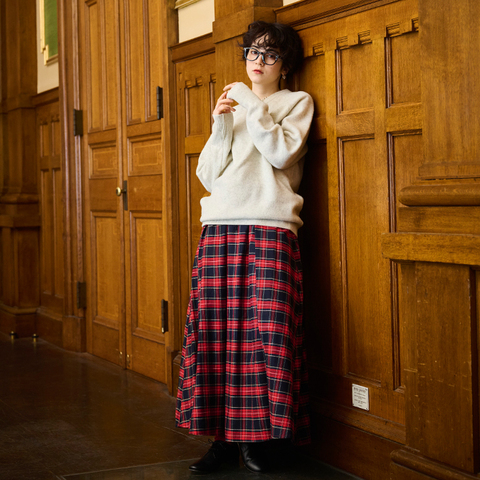 NARU|(ナル) Nishiwakiフランネルチェック ウエストリボンスカート 660805 丈長め Aライン