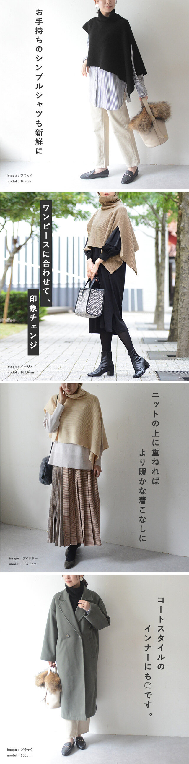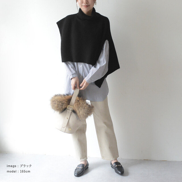 どんなカラーにも合わせやすいブラック。アシンメトリーなデザインと相まって、モードな雰囲気も楽しめます。