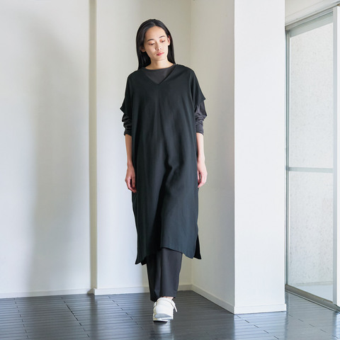 ドレープが美しく落ち感もあるので広がりすぎずすっきりとしたシルエットです。