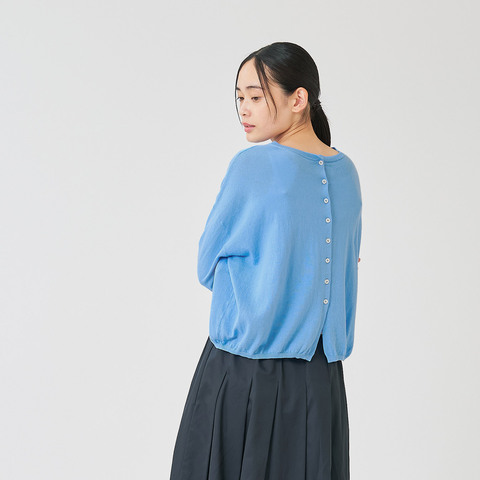 カーディガンとしても、ボタンをすべて留めて背中側にまわせばワイドシルエットのプルオーバーとしても着られる2way仕様です。