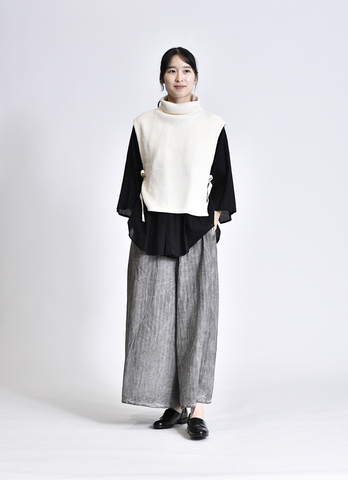 人気素材のコットンニットで、ハイネックタイプのベストを作りました。