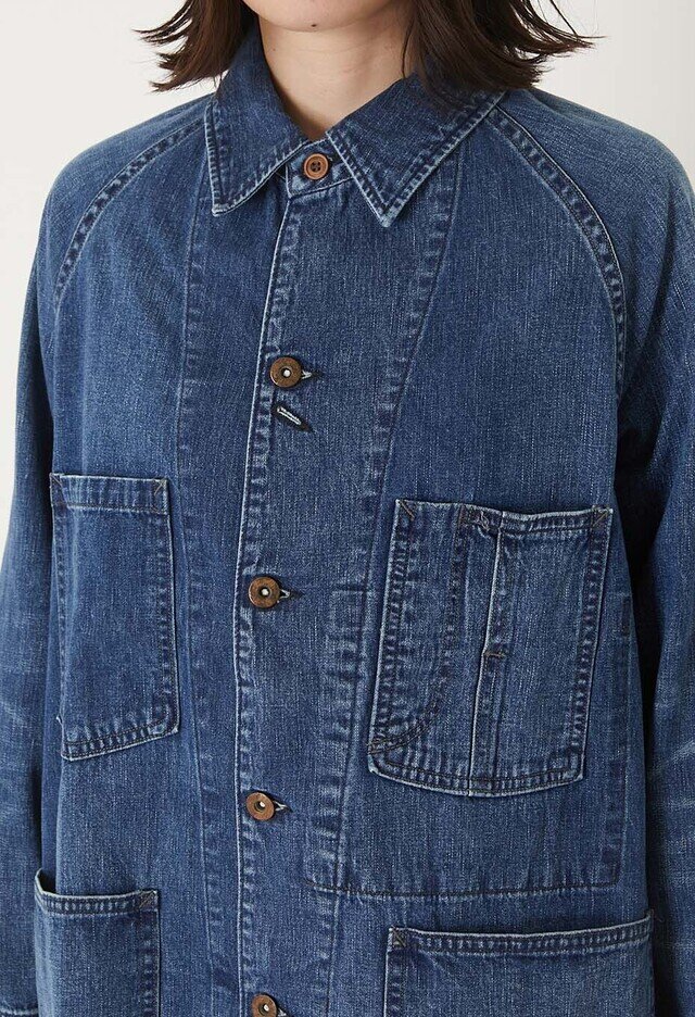 BLUE BLUE|JK101 セルビッチライトデニム ヴィンテージウォッシュ ラグランスリーブカバーオール