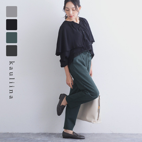 kauliina|微起毛 キレイ見え 2タック ワイドパンツ / 静電防止 ストレッチ イージーケア