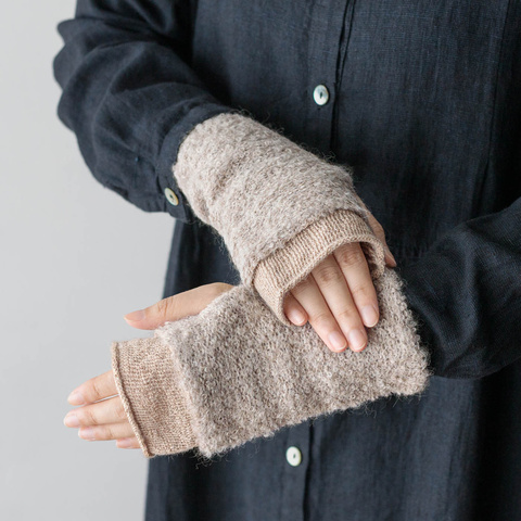 sisam|手編みのクリスマスギフトA【手編みミトン】【アラン模様】【ちくちくしない手袋】