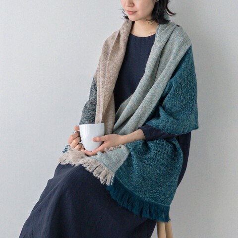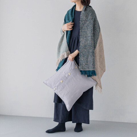 65×175㎝の大判ストールは、マフラーとしてだけでなく、室内で肩掛けとしてもおすすめ。優しいカラーリングはインテリアにも馴染みやすく、ソファやベッドに置いておけば重宝しますよ◎