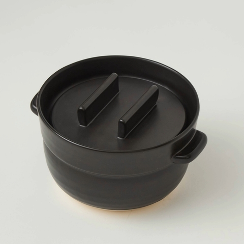 土鍋は便利ではありますが、どうしても場所をとる印象があります。特に炊飯用の土鍋の場合は内蓋が付いていることが多く、その分サイズが大きくなってしまいがちです。そこでこちらは、問題となる内蓋なしの形を採用。代わりに蓋自体を重くして、圧力がかかる仕様になっています。