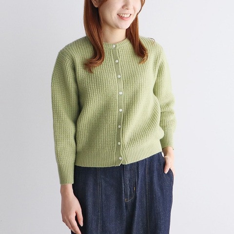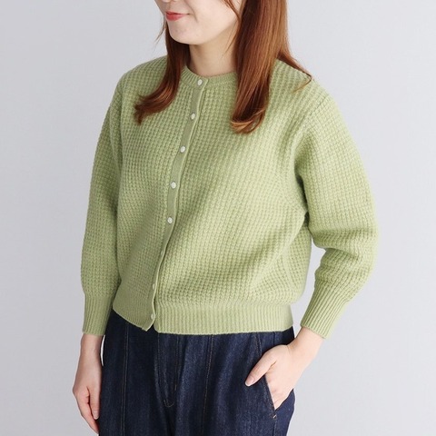 「STAMP AND DIARY (スタンプアンドダイアリー)」より、カゴのような編み柄が印象的なショート丈カーディガンのご紹介です。