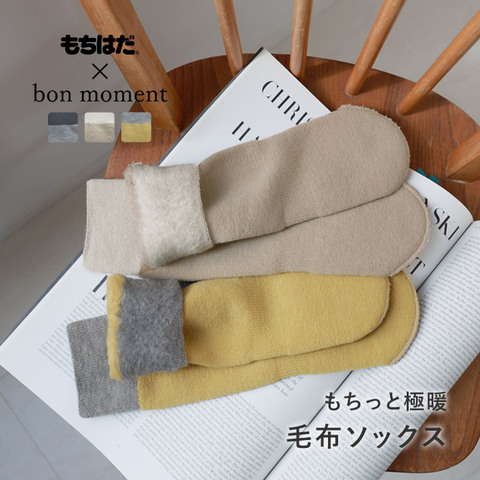 そんな冷え性さんの味方ルームソックスを、bon moment(ボンモマン)のオリジナルカラーで作っていただいたのがコチラ。濃密な起毛感ともちもちの厚手クッション感で、寒い季節のおうち時間の足元を温もりと気持ち良さで包みます。