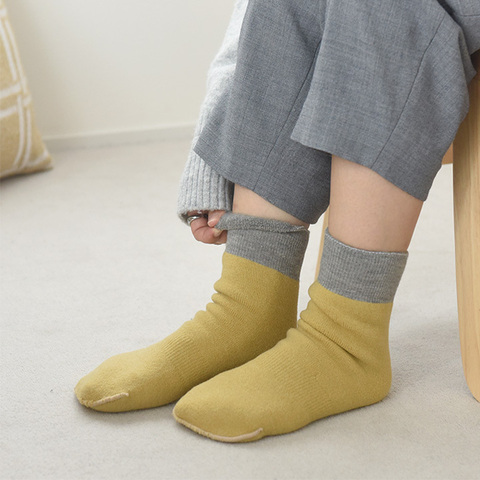 よく伸びて暖かいとご好評のもちはだ®コラボのルームソックスが、装い新たに配色デザインになって帰ってきました。