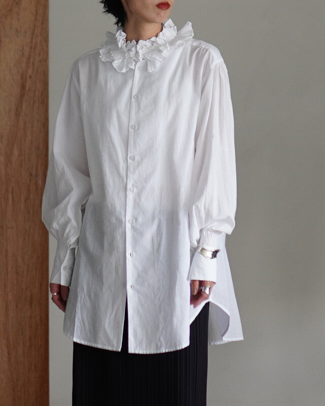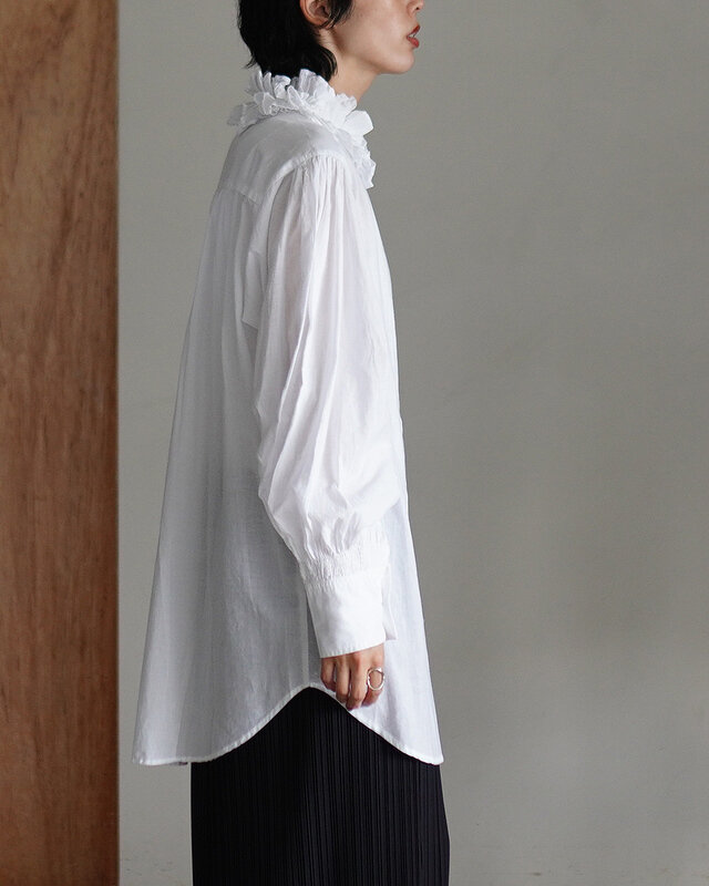 tumugu|コットン ノヴァテレコ ハイネック カットソー フリル 長袖Tシャツ トップス 重ね着 TC20103-WA 0917 ツムグ