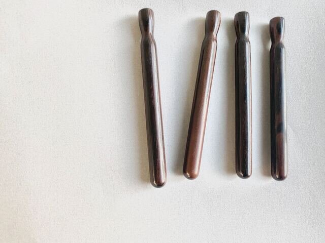 手前から、パープルハート、黒檀、椿、欅
