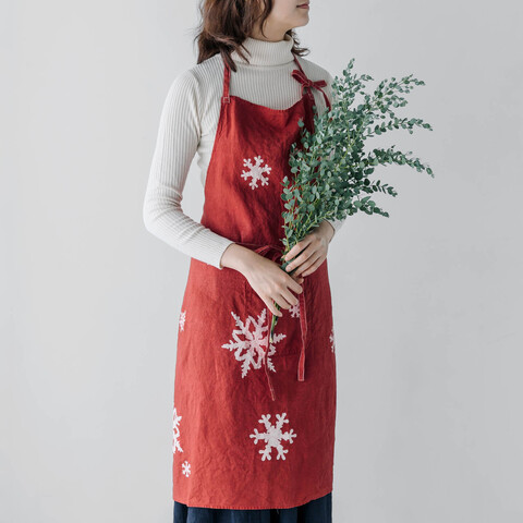 素朴な雪の結晶が愛らしく、温もりあふれるデザイン。BERTOZZI(ベルトッツィ)のエプロンは、イタリアの職人の手によってひとつひとつ作られています。