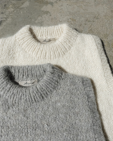 アルパカの中でも希少性の高い "SURI / スーリー" の毛とウールをミックスさせた毛糸で編まれたニットベスト。