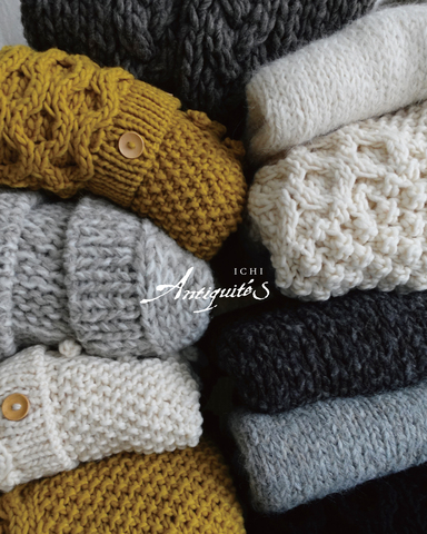 毛糸も旧式の紡績機で紡績しているので太さの一定していない味わいのある糸で編まれています。