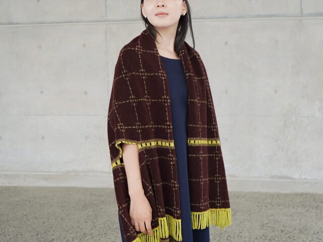 シンプルなデザインですが、ステッチやフリンジにアクセントカラーを用いているので飽きのこないストールとなっています。