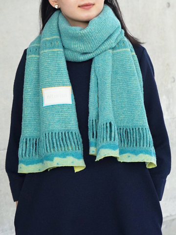 フリンジ付きで、シンプルながらも使いやすく、軽くて暖かい。毎日使いたくなる一枚です。