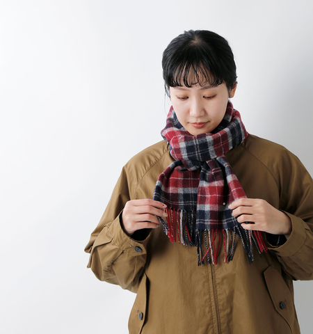 タータンチェックでコーデに華を添える、ラムウールロングフラー