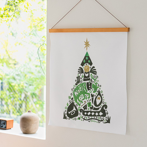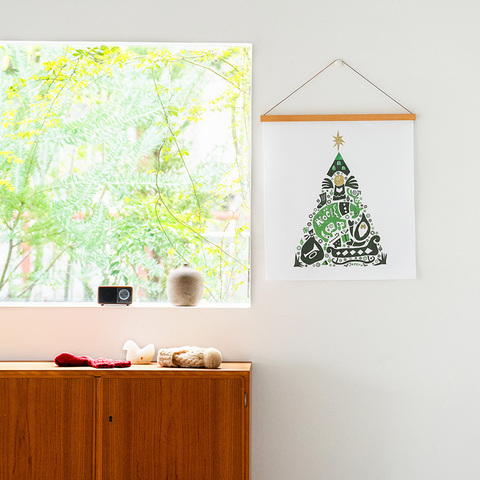 絵本作家・イラストレーターのさこももみさんによる、切り絵タッチで描くクリスマスツリー。大切な絵を飾るように、布タペストリーを部屋に取り入れて。