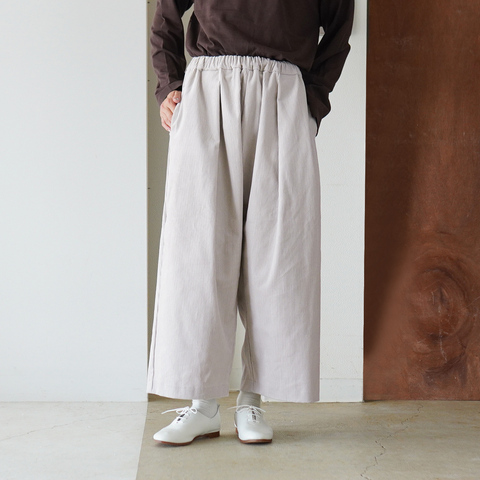 前後に深めのタックを施した立体的なフォルムが印象的なコーデュロイワイドパンツ。