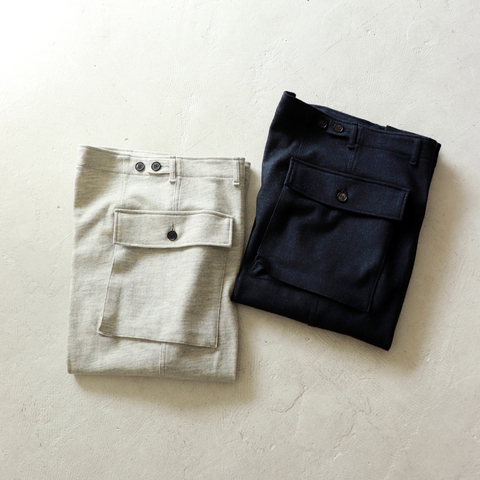 大きなポケットがインパクトのある上品なウールメルトンパンツ