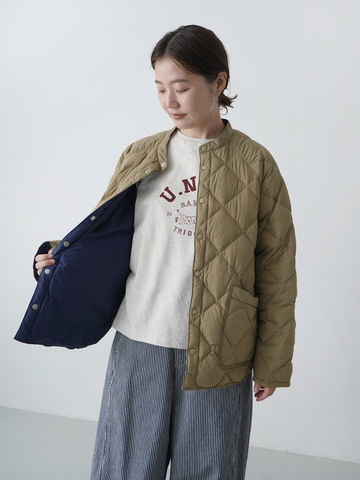 おしりが隠れる着丈で、ロングシャツや少しゆとりのあるトップスを着用した時にもなんなく羽織れる丁度良い形。一枚あると何かと便利な一着になりそうです。