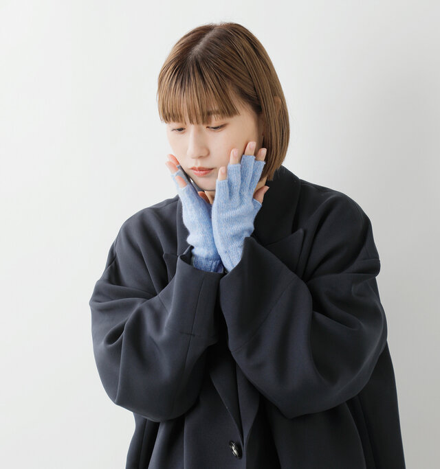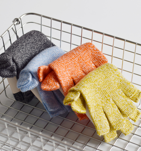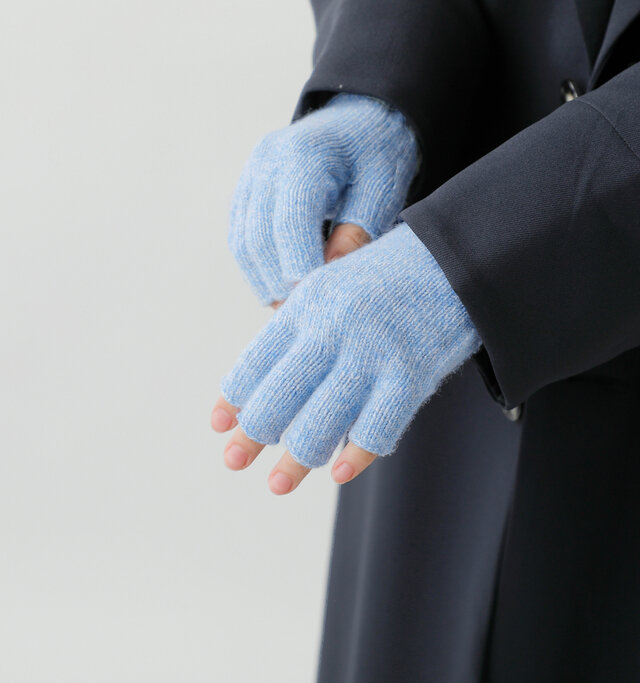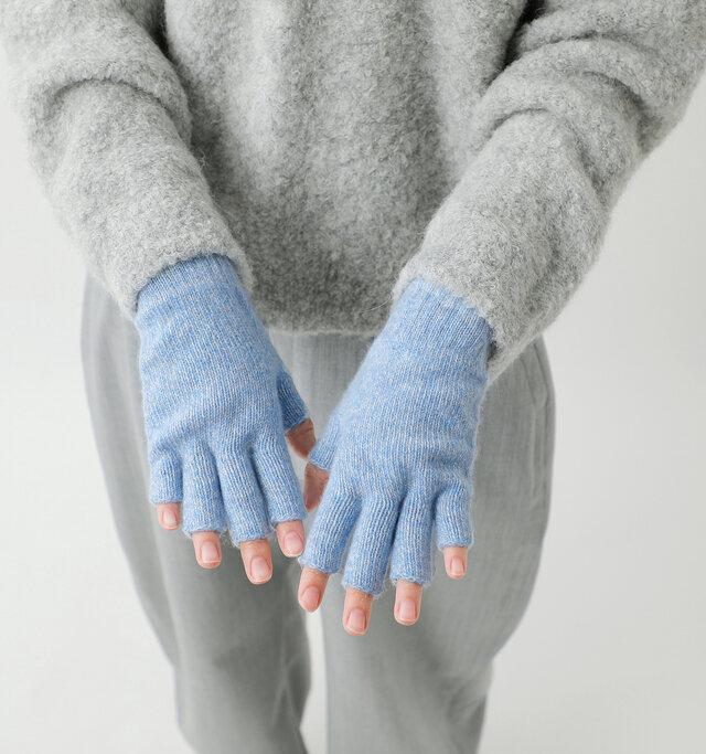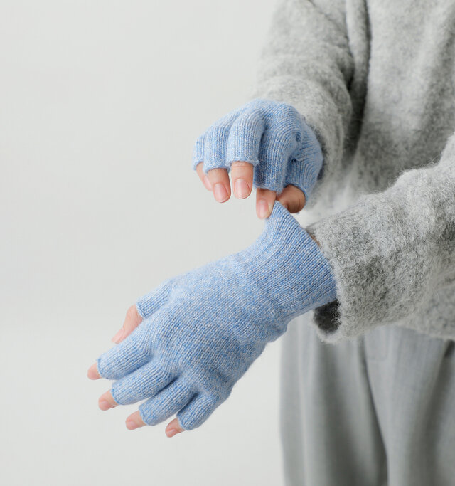 スコットランド産カシミヤを100%使った、柔らかな風合いで優しい雰囲気漂うフィンガーレス手袋。