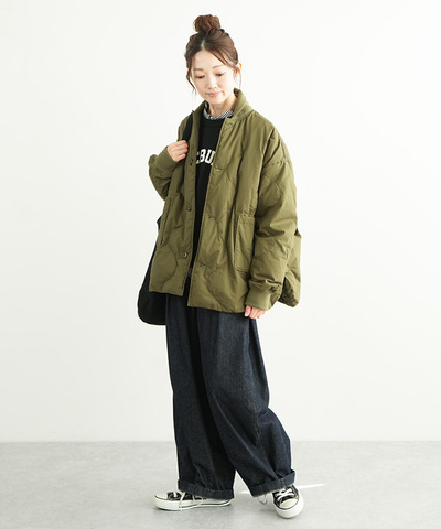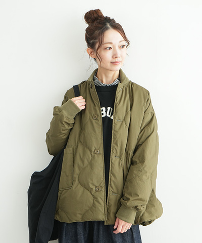 Gymphlex|ナイロンタフタ キルトダウン カラーレスコート