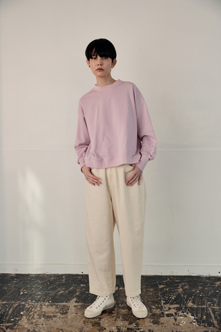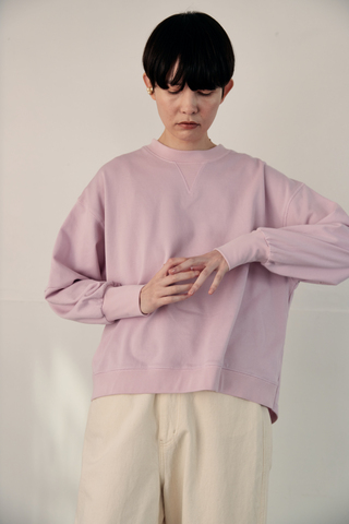 柔らかいミニ裏毛素材と構築的なシルエットデザインのバランスが良い、こだわりスウェットです。