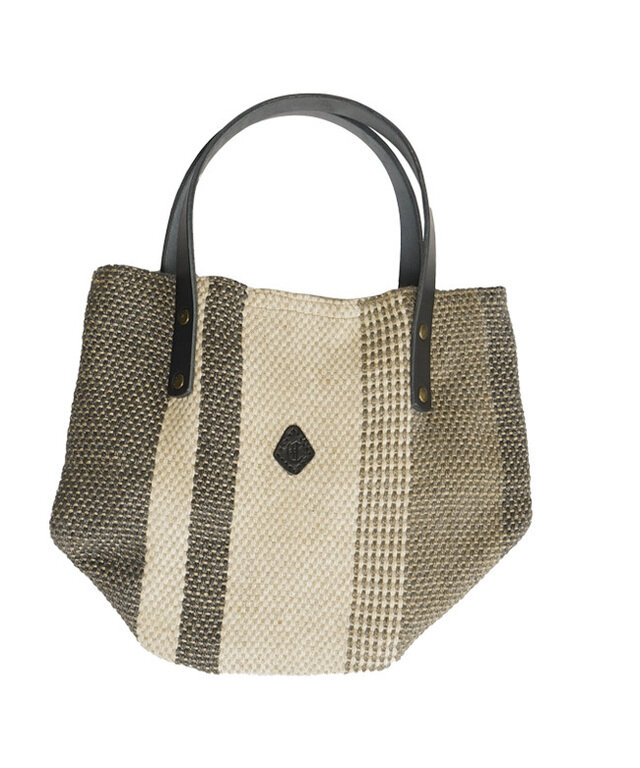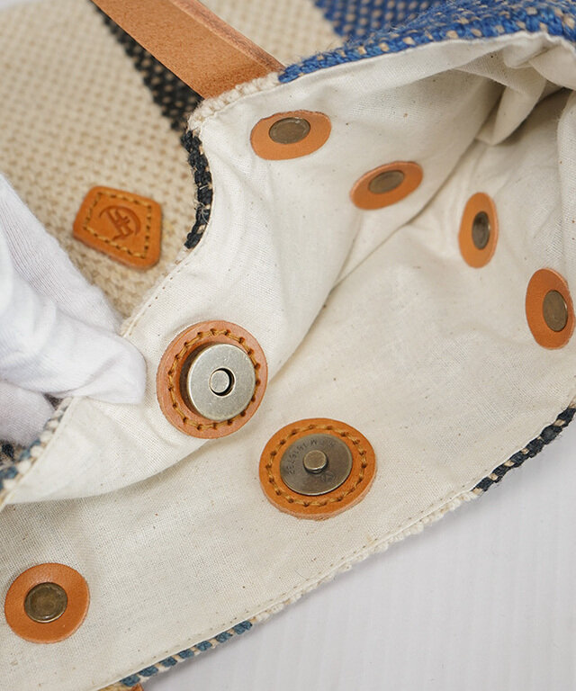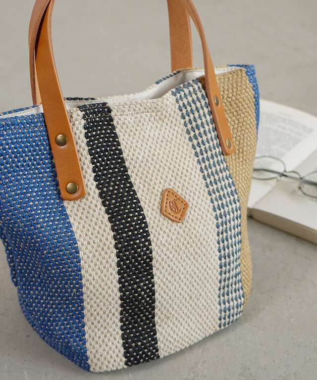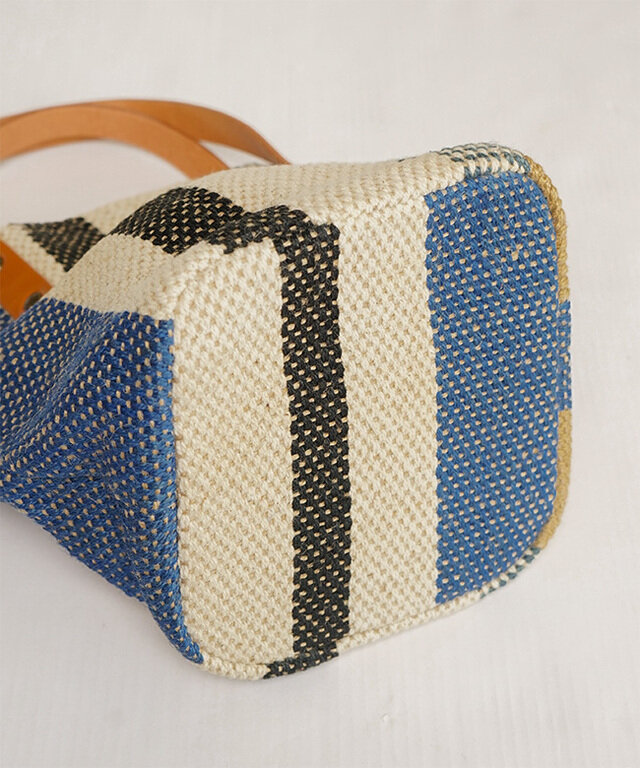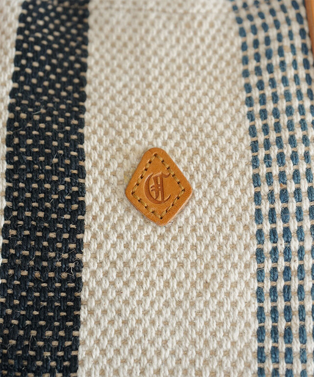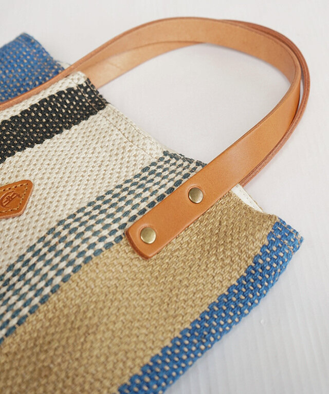 そこにキナリ色の縦糸(コットンジュート製)をミックスすることで、見た目にアクセントが生まれるだけでなく、天然素材の素朴さとコットンジュートのしなやかさを兼備したアイテムに仕上がりました。