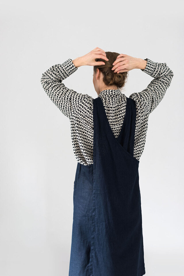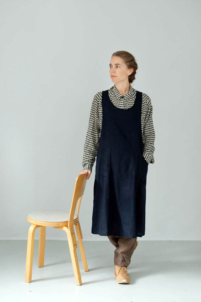Aラインワンピースのようなエプロン。