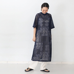 頭からすっぽりかぶるエプロンです。身体を一周ぐるりと包むかたちなので、ジャンバースカートの様なシルエット。エプロンぽさがあまりないので、ちょっとそこまでのお買い物の時にもそのまま着ていただけます。