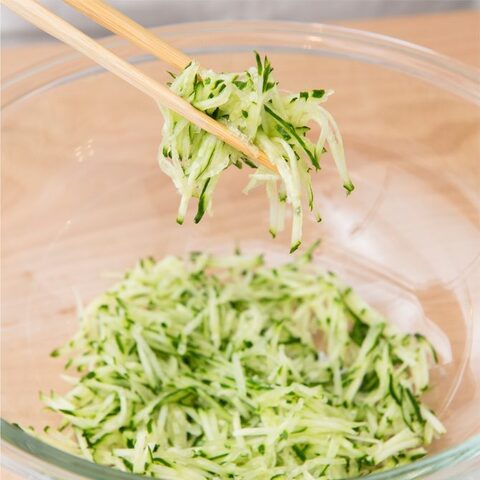 細かい千切りになったきゅうりは、和え物と一緒にしたり、サラダに入れてもちょうどいい大きさと細さになりました。