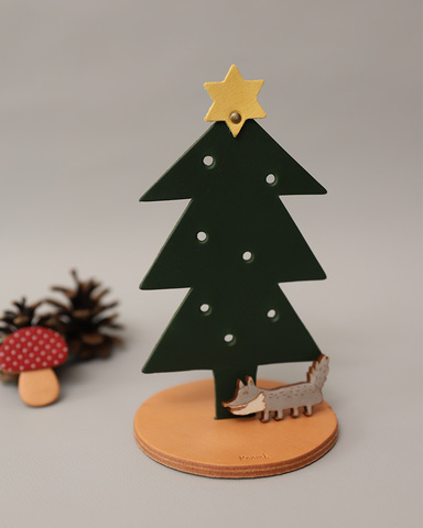 北欧の森の針葉樹をモチーフにした深いグリーンの革と、温かみのあるヌメ革の組み合わせにお星さま。お部屋や玄関に置くだけで心が和みます。