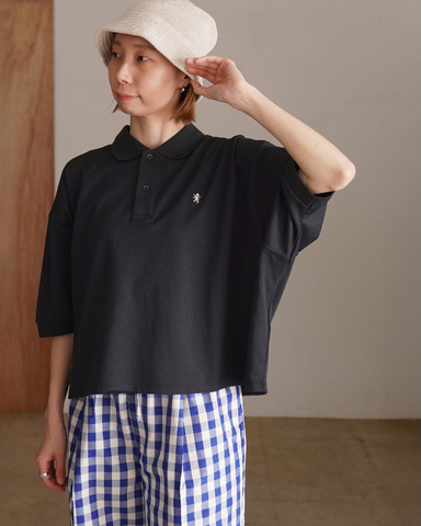 ゆとりのあるドルマンスリーブとクロップド丈で、バランスよく見えるポロシャツです。