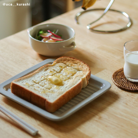 アイボリーにまろやかなグレーが混ざった、ライトグレー。食卓風景を明るく彩ります。