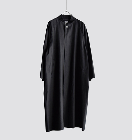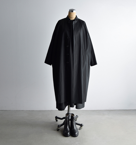 atelier naruseのフォーマルラインシリーズにはじめてのコートが加わります。そのデザインとして採用したのは24AWのコレクションラインでも登場する「スタンドカラーコート」。全身がすっぽりと包まれるようなロング丈のフォーマルコート。たとえば、フォーマルジャケットを着た上に着てももたつくことなく、すっきりとキレイに着ることができるサイズ感です。