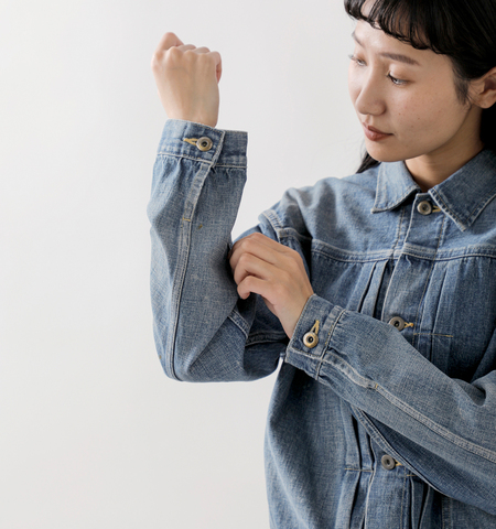 chimala(チマラ)よりセルビッチ ネップ デニム ショート ジャケットのご紹介です。シーズンを通して着用いただける11ozセルビッチネップデニムを使用したジャケット。フロントプリーツデザインに片側のポケットが特徴的。プリーツは装飾の役割に加えて、ボタンを留めて着用した際にも胸まわりに立体的なゆとりを確保します。ラフに羽織るだけで、コーディネートに奥行きや立体感が出てワンランク上のおしゃれを叶えてくれるアイテムです。性別や年齢を問わず、誰でも使いやすい一着。家族やパートナーと共有して一着持つのもオススメです。