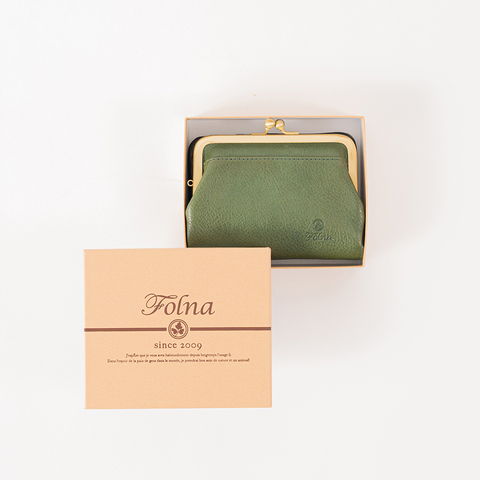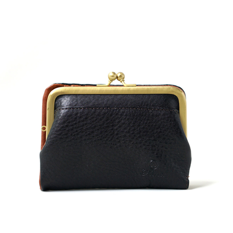 がま口部分は真鍮色で、経年変化し深まるレザーの風合いを品よく引き立てます。