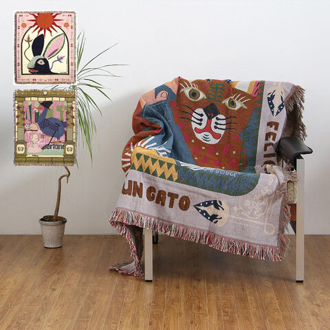 ソファやベッドにサラッと掛けて、膝掛けとして、鮮やかな色合いをいかしてアートとして壁面への装飾として斬新な使い方など様々にお部屋を彩ります。