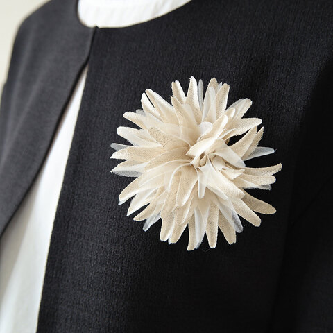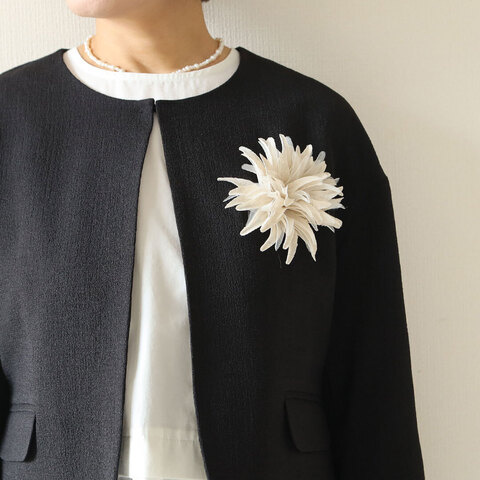 シンプルで上質で仕立てのいい服を選んだら、次に目を向けてほしいのがコサージュ。