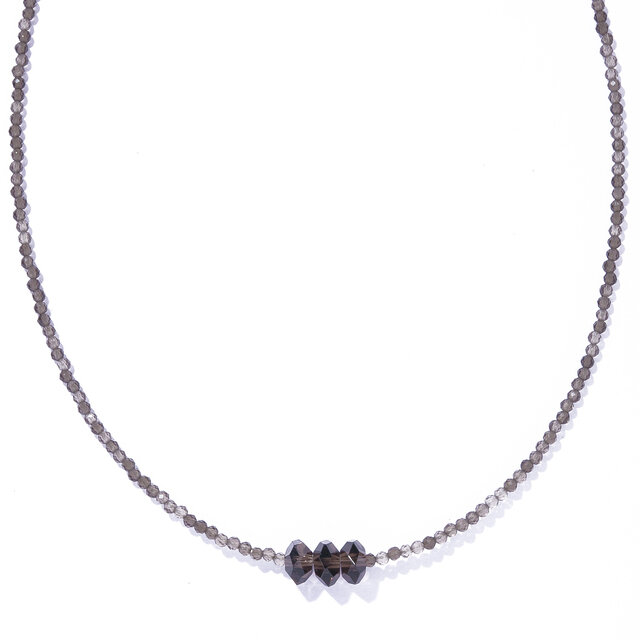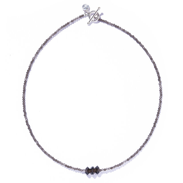 トップにあしらった立体的なスモーキークォーツがメリハリを生み、デコルテに上品な色香を演出します。