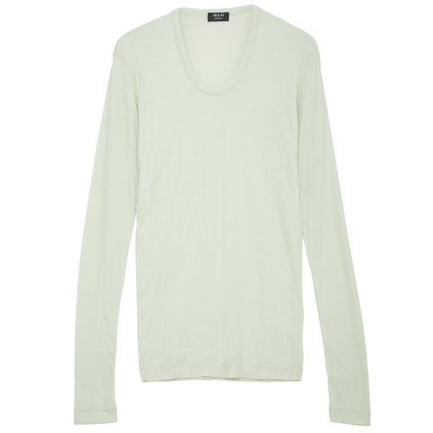 良質な綿ならではのしっかりとした風合いと上品な光沢があり、知的なムードで着用できるリブ編みカットソー。